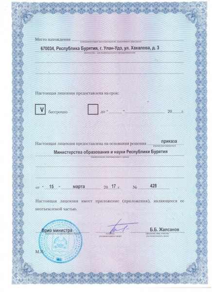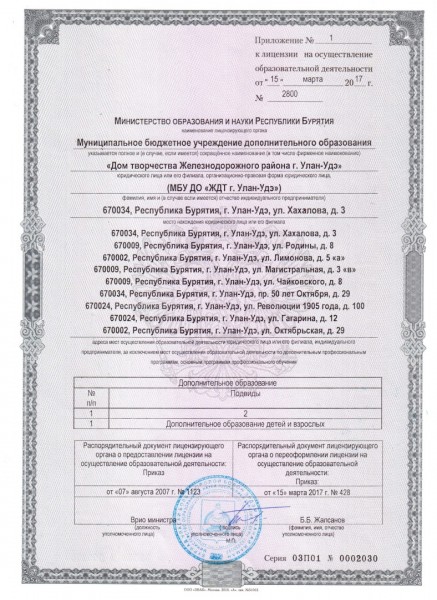 | Адрес местонахождения образовательной организации* | 670034 Республика Бурятия, г. Улан-Удэ, ул. Хахалова, 3; ул.Жуковского,25 |