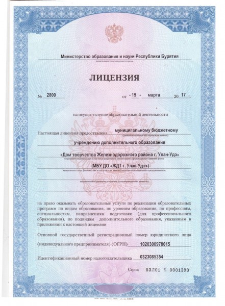 | Полное наименование образовательной организации* | Муниципальное бюджетное учреждение дополнительного образования "Дом творчества Железнодорожного района г. Улан-Удэ" |